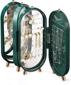 - 【Folding Design & Dust-proof】The foldable screen design can greatly save space. Ornaments are not easy to entangle during display and storage, and friction can also be avoided. When you are not showing jewelry, you can fold the jewelry box for jewelry storage. Closing the jewelry box can isolate the air, delay the aging of the jewelry, and prevent the accumulation of dust.
